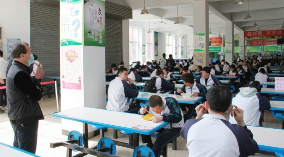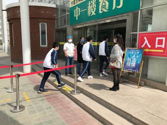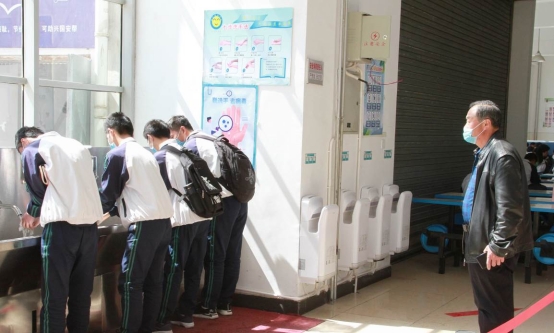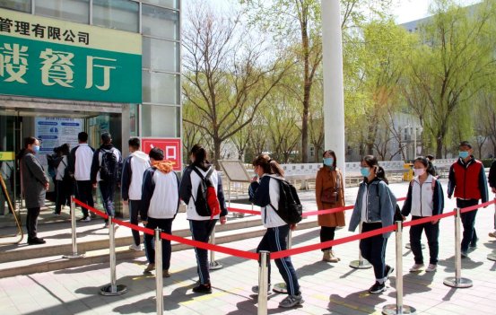 高三学生复课以来,学生实行分批分时就餐制度,每到就餐时间,我们总会看到第二父母老师们等候在餐厅门外,指导学生保持距离、有序排队,督促学生餐前认真洗手、在指定的就餐点就坐,避免聚集。随着学生用餐结束,第二父母老师们还会来到宿舍,了解学生近期的学习和思想状况,跟学生谈心,缓解学生在特殊时期的紧张和焦虑。