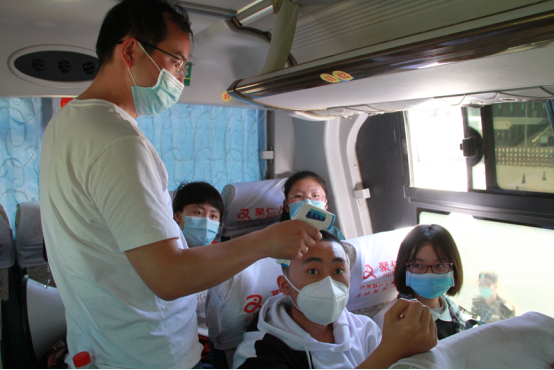 育才中学的学生家校距离远,学校安排大巴车点对点接送学生,九个县加两条线路,33辆大巴车,将学生安全送到学校。对于离家的育才学子来讲,学校就是另一个家,在这个重要的成长阶段,老师们不会缺席。他们化身“健康观察员”,坚持有“温度”的每日晨午晚检;他们是“食堂巡视员”,维持错时、错峰就餐秩序;他们还是“心理咨询师”,关照学生各种情况下的情感需求。在学生出现发热等特殊情况时,学校会第一时间联系医院、上报信息,老师和医务人员也会全程陪同,安抚学生情绪,鼓励他坚定信心积极配合检查。在等待家长接回期间,发热学生暂时住宿在教师公寓五楼或宿舍楼的“爱心宿舍”内,会有夜间值班老师在旁陪伴,给予孩子心理支持和最温情的守候。